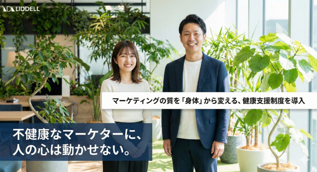 TOP ニュース 【マーケティングの質は「身体」から変わる】リデル、正社員・常駐フリーランス向け健康支援制度を本格始動 【マーケティングの質は「身体」から変わる】リデル、正社員・常駐フリーランス向け健康支援制度を本格始動 2026.02.12 お知らせ リデルは、所属するすべてのメンバー(正社員およびフルタイム常駐の業務委託・フリーランス)を対象とした、健康支援福利厚生を2026年3月より本格始動いたします。提携クリニックでの点滴、パーソナルジム補助、社内フィットネス、定期検診支援などを含む「Marketing Health Capital」を導入。 雇用形態を超え、チーム全体のパフォーマンス向上に投資します。 詳しくはこちら 一覧へ戻る カテゴリーの新着記事 R E L A T E D A R T I C L E お知らせ flier(フライヤー)に『オウンドコミュニティ』が掲載されました 2026/01/13 お知らせ PRST初の公式アワード「PRST Best Creator 2025 by LIDDELL」開催 ノミネート10名からグランプリ1名が決定! 2025/12/25 お知らせ 年末年始休業のお知らせ 2025/12/15
